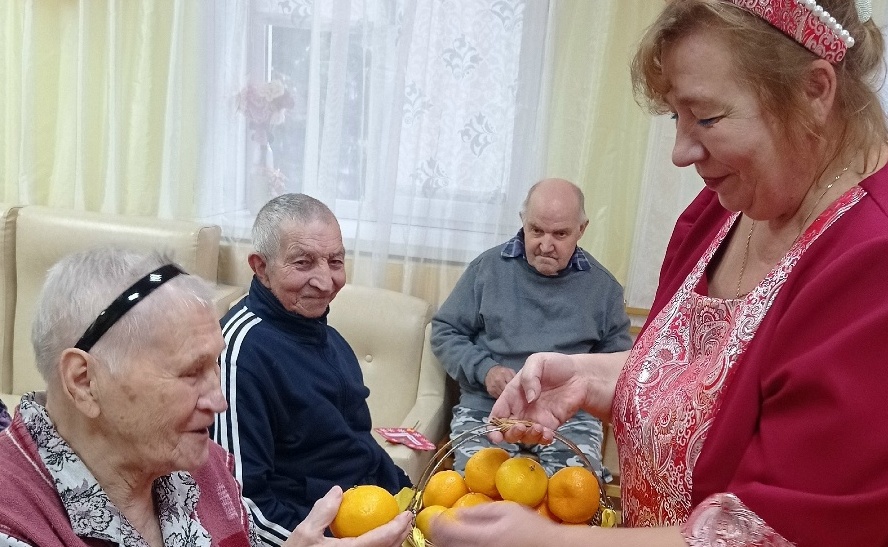 По доброй и уже сложившейся традиции артисты угостили жителей мандаринами и поздравили тем самым с наступающим Новым годом!