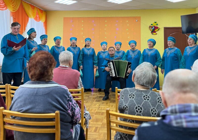 Сегодня мы встретили у себя в доме-интернате прекрасный ансамбль народной песни во главе с его руководителем Виктором Красноперовым.