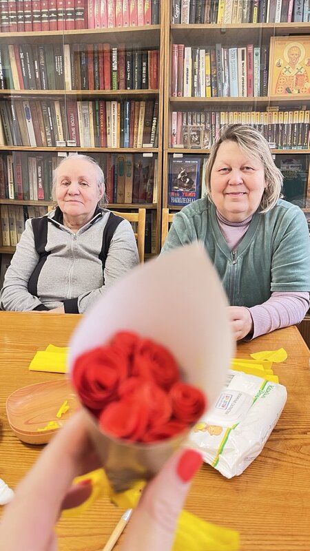 Наши умелые жители сделали маленький, но очень милый букетик роз из цветной бумаги.